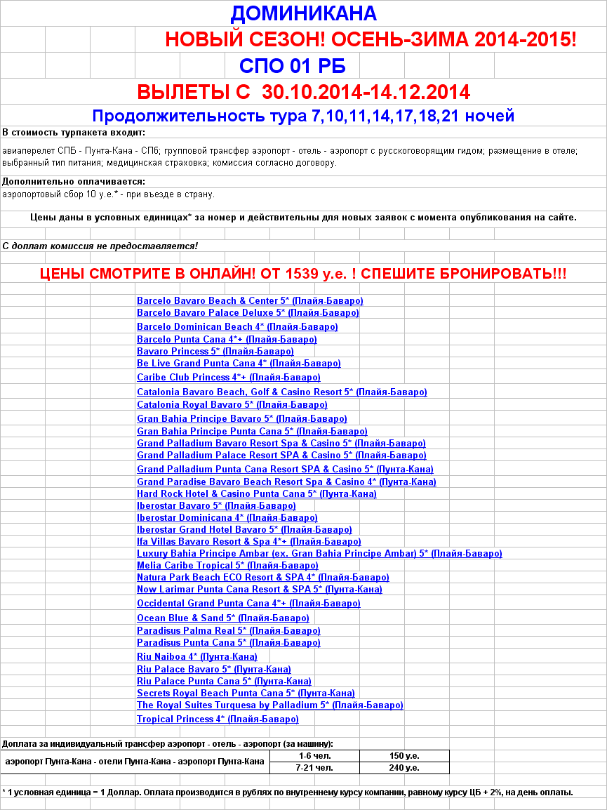 04 Сен 2014 11:36:46 ДОМИНИКАНА с 30.10 от 1539 у.е. от фирмы ЮЖНЫЙ КРЕСТ