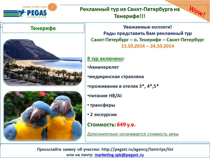 05 Сен 2014 15:26:12 ИСПАНИЯ Тенерифе 13.10-24.10 Рекламный Тур за 649 евро от фирмы PEGAS