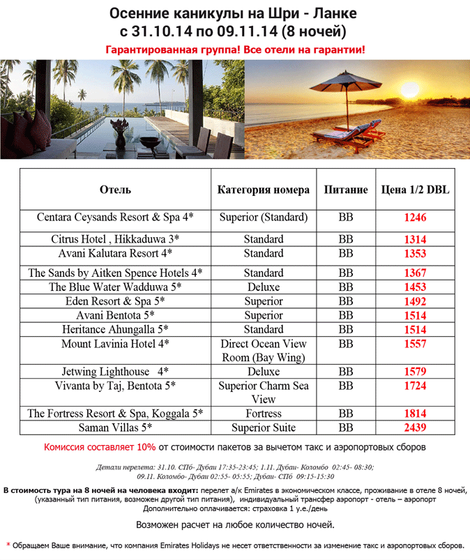 ШРИ-ЛАНКА - ОАЭ 31.10-09.11 (8н) на осенние каникулы от фирмы EMIRATES HOLIDAYS