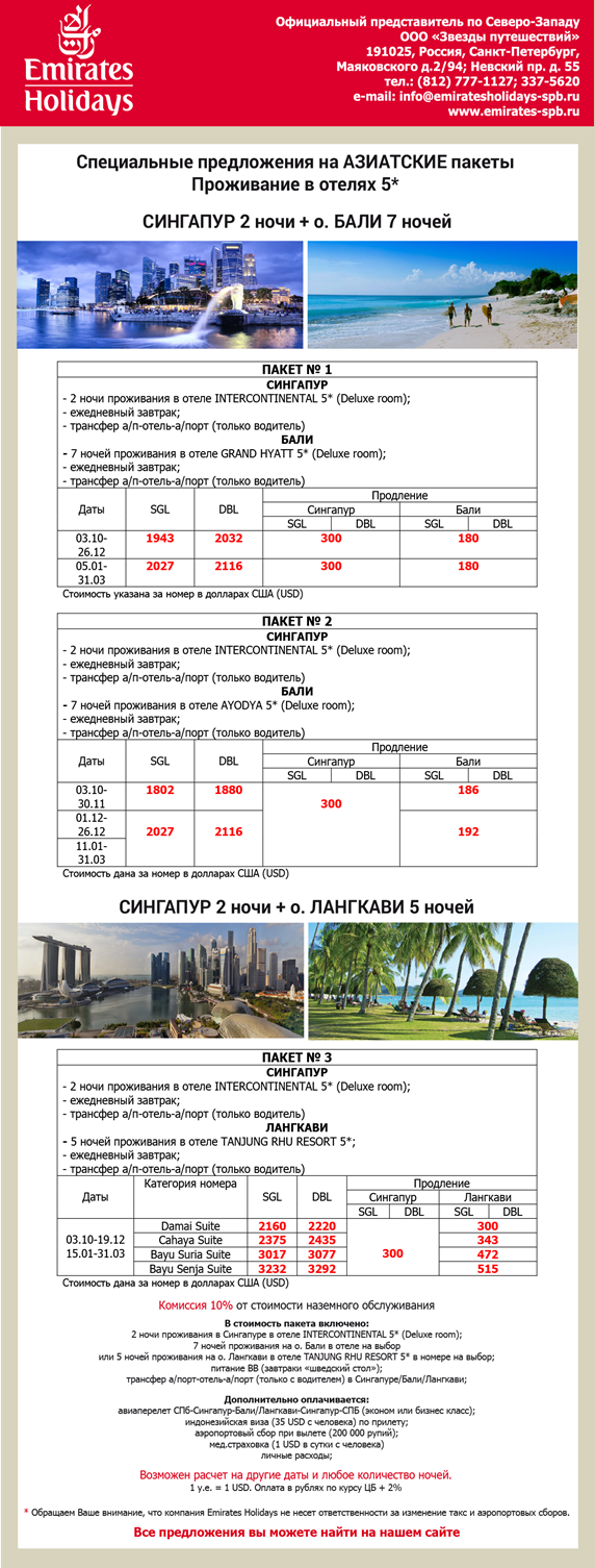 СИНГАПУР+ИНДОНЕЗИЯ+МАЛАЙЗИЯ (Бали/Лангкави) - СПО в отелях 5* от фирмы EMIRATES HOLIDAYS