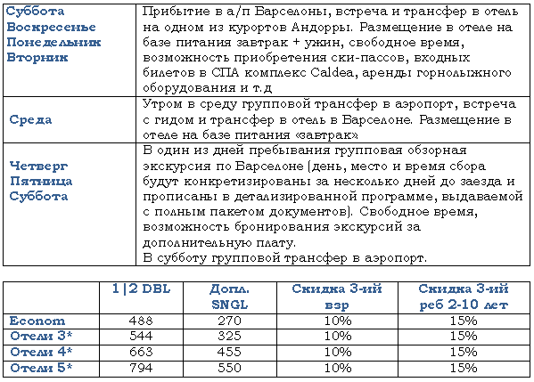 трансферы аэропорт-отель в Андорре-отель в Барселоне (через а/п) –