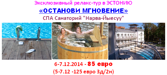 12 Ноя 2014 07:33:19 ЭСТОНИЯ 06.12-07.12 Релакс-тур в Нарва-Йыесуу СПА от 85 евро от фирмы ВИЗА-КОНСУЛЬТАНТ