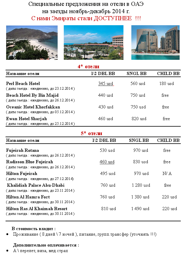 ОАЭ отели 4-5* в ноябре-декабре от фирмы TRAVELLUX