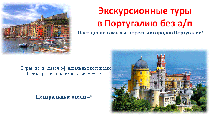 – Синтра – Мыс Рока – Кашкаиш – Эшторил – Мафра - Обидуш – Куимбра – Порто – Брага - Гимарайш – Баталья – Эвора