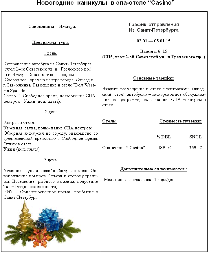 ФИНЛЯНДИЯ Савонлинна-Иматра 03.01-05.01 новогодние каникулы в спа-отеле Casino от 189 евро от фирмы EUROPE-TOUR |