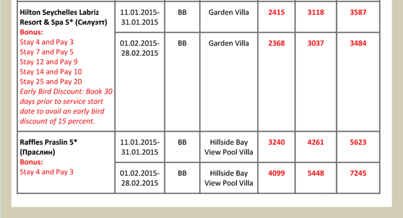 СЕЙШЕЛЫ в январе-феврале 2015 от фирмы EMIRATES HOLIDAYS |