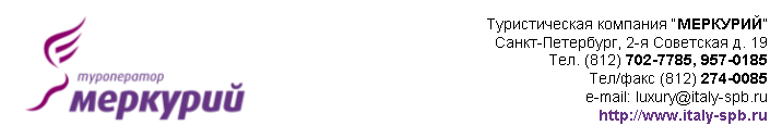 всеми ценами и программами Вы можете ознакомиться на нашем сайте: http://www.italy-spb.ru/