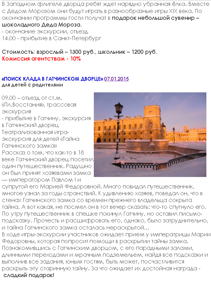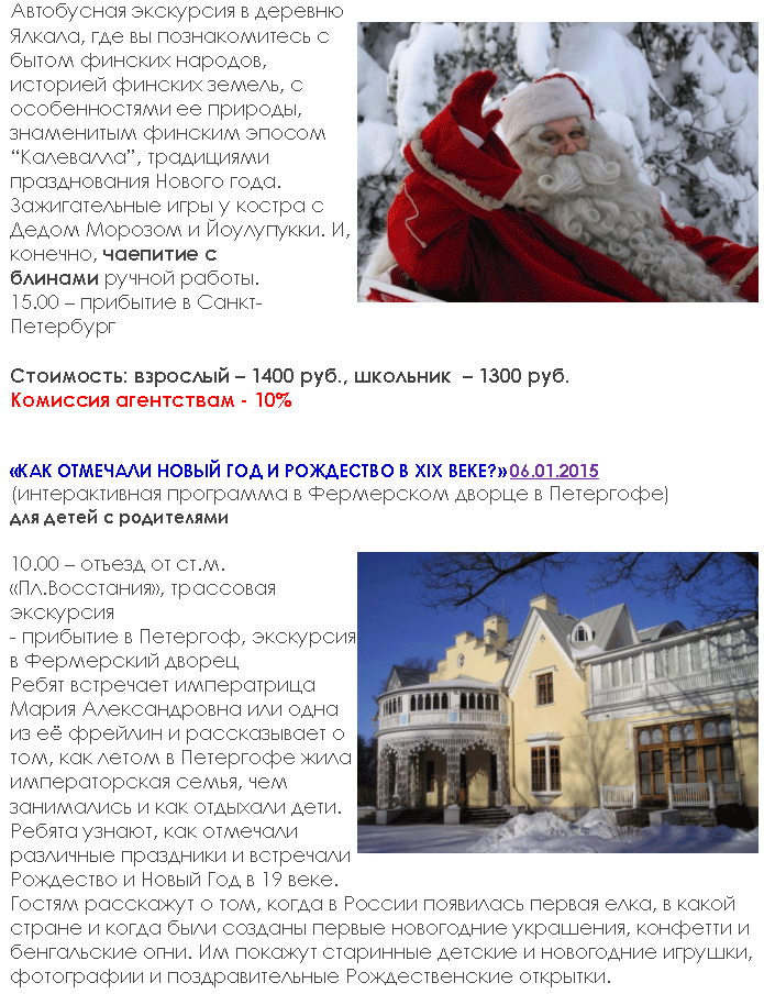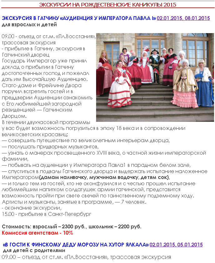РОССИЯ Ленобласть Экскурсии на Рождественские каникулы от фирмы ЛАДЬЯ |